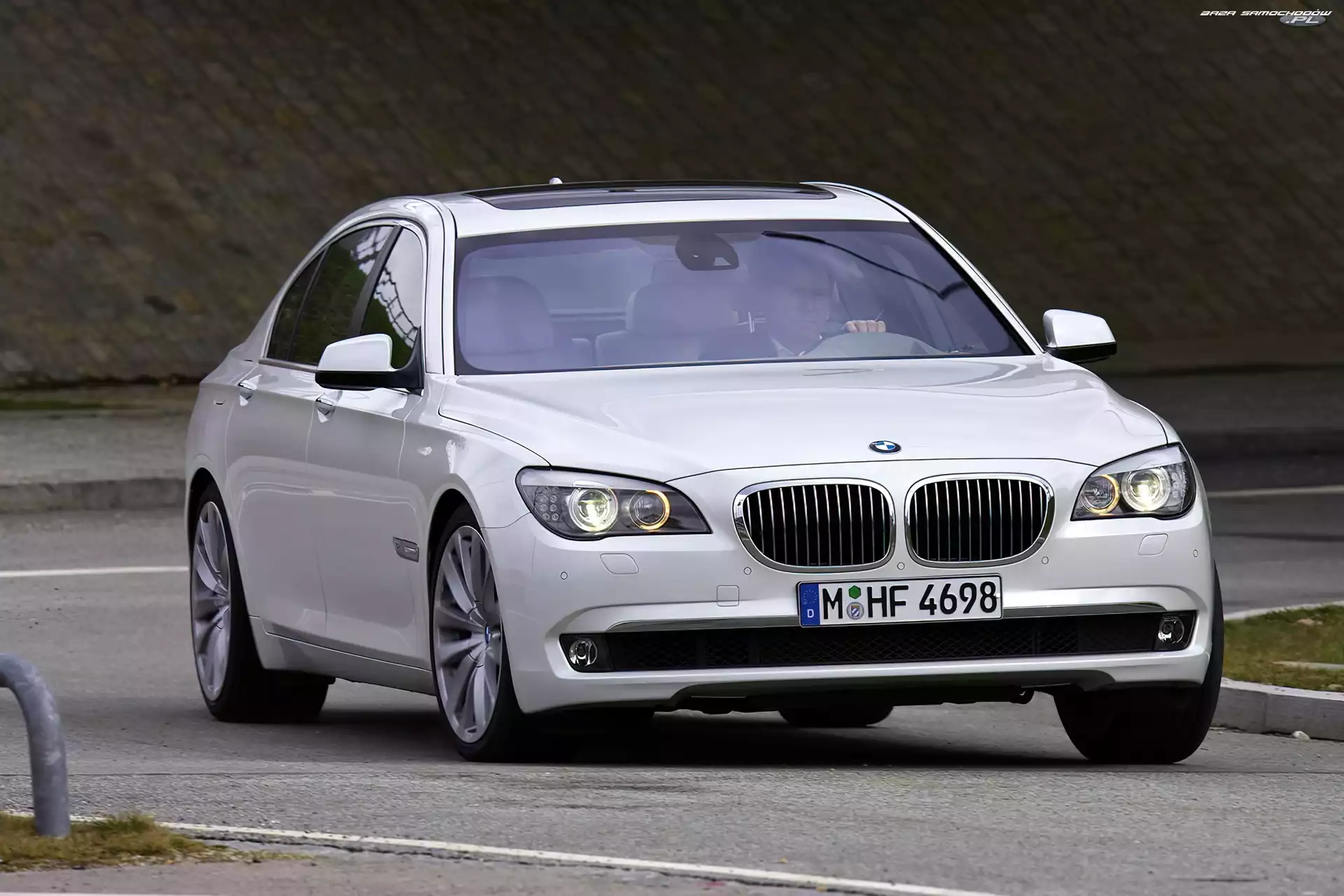 Samochód: BMW F01, Zakręt, Biała, Tor