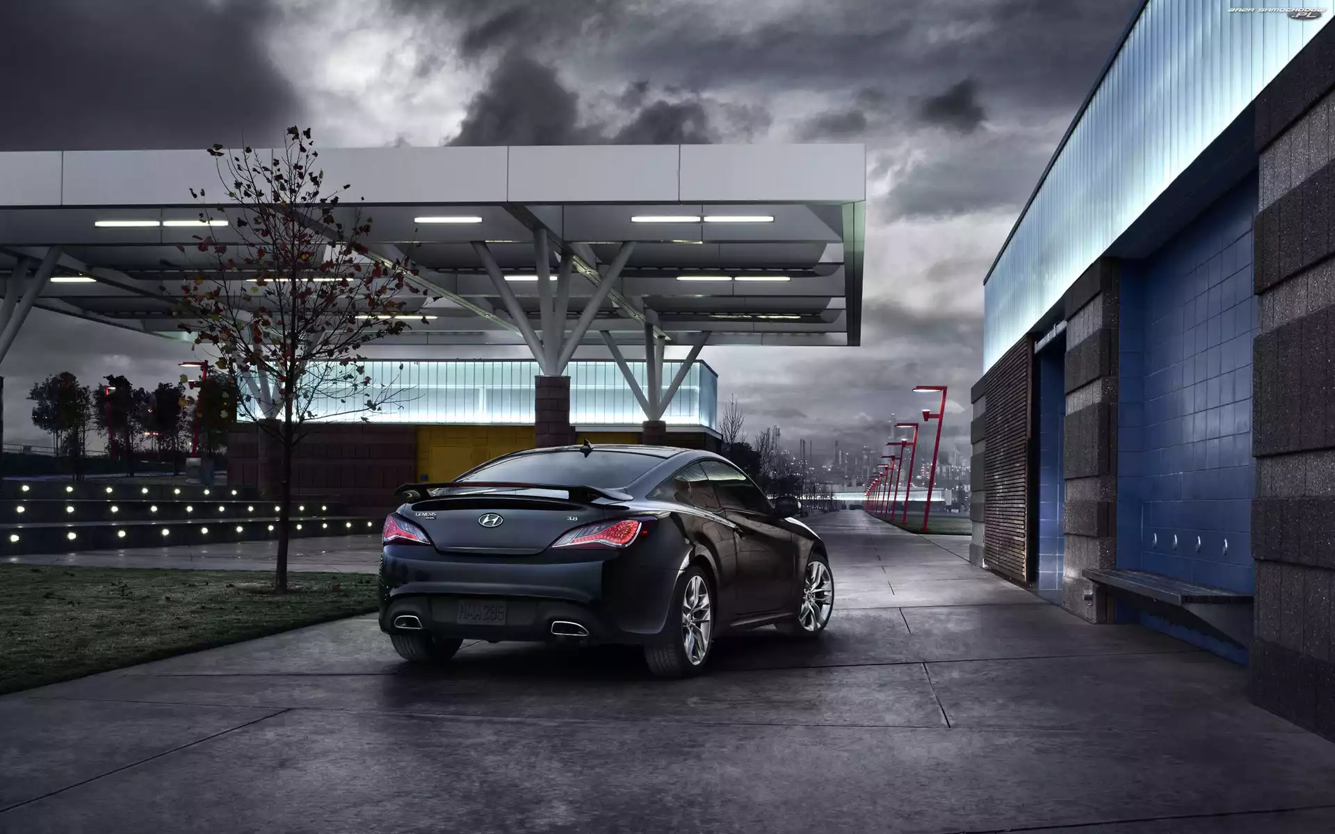 Budynki, Ciemny, Hyundai Genesis Coupe- Zdjęcia samochodów