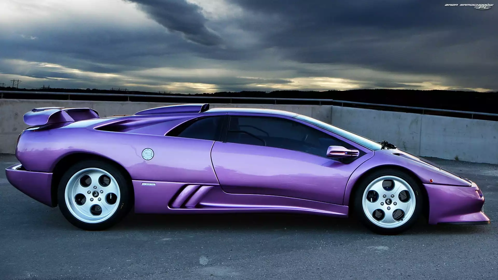 Samochód: Lamborghini, Fioletowy, Chmury , Niebo, Samochód, Diablo