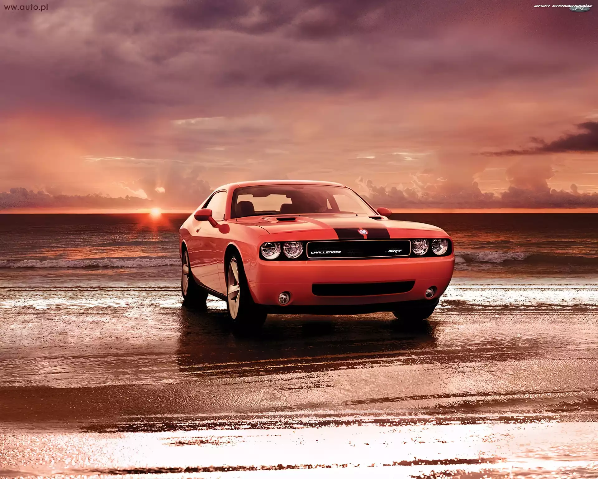 Samochód: Morze, Dodge Challenger, Plaża