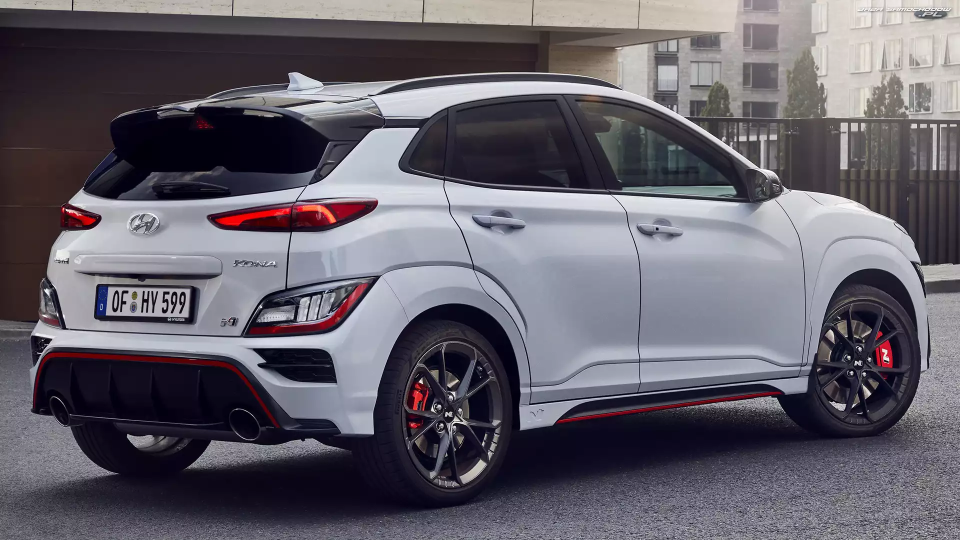 Samochód: Biały, Hyundai Kona N, Tył, Bok