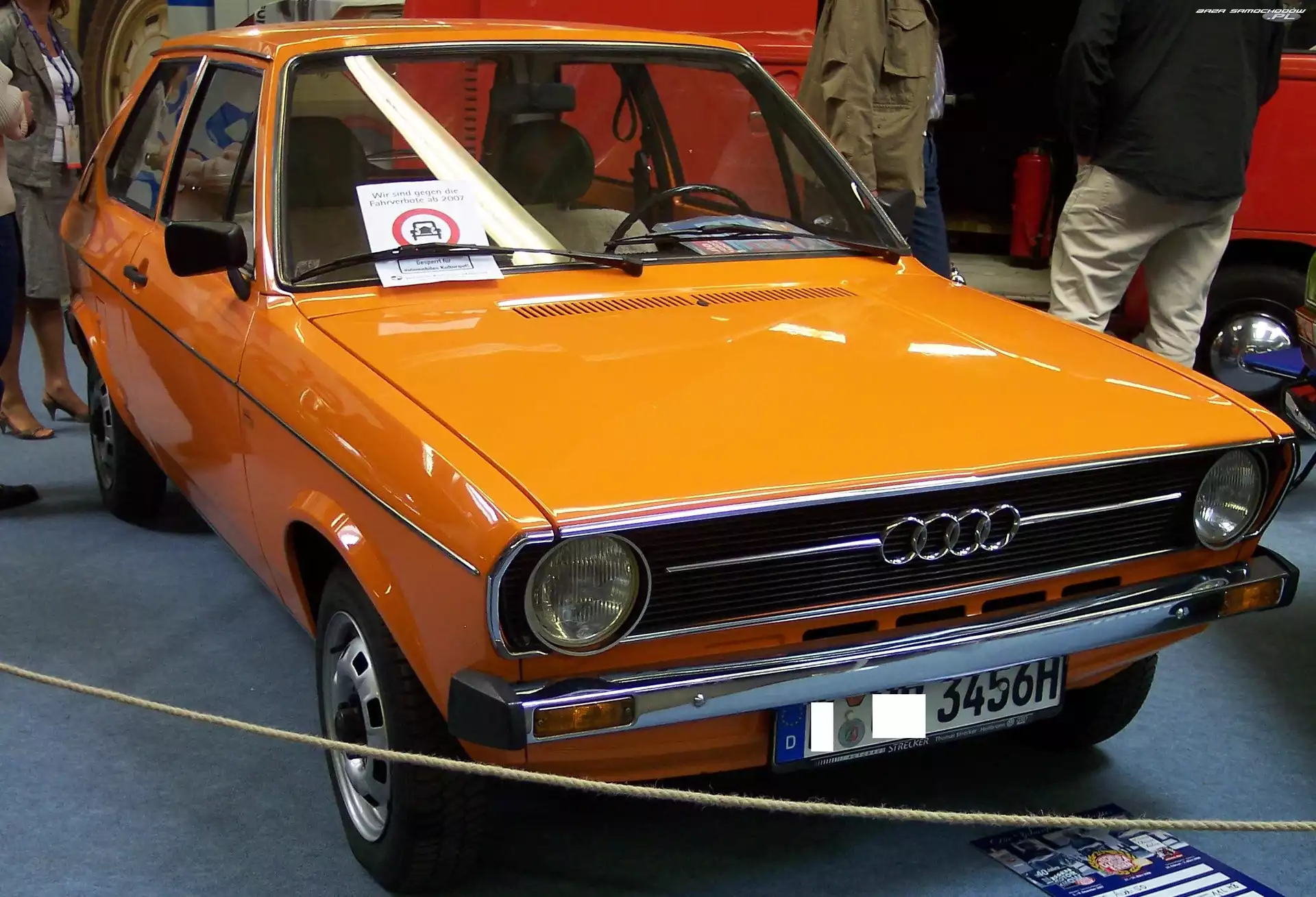 Wystawa, Audi 50, Salon Drzwi, Audi 50 Prezentacja, Audi 50, Wystawa Hatchback, Audi 50 Audi 50, Chrom, Przód, Zderzak Audi 50 Reklama, Pomarańczowe, Audi 50