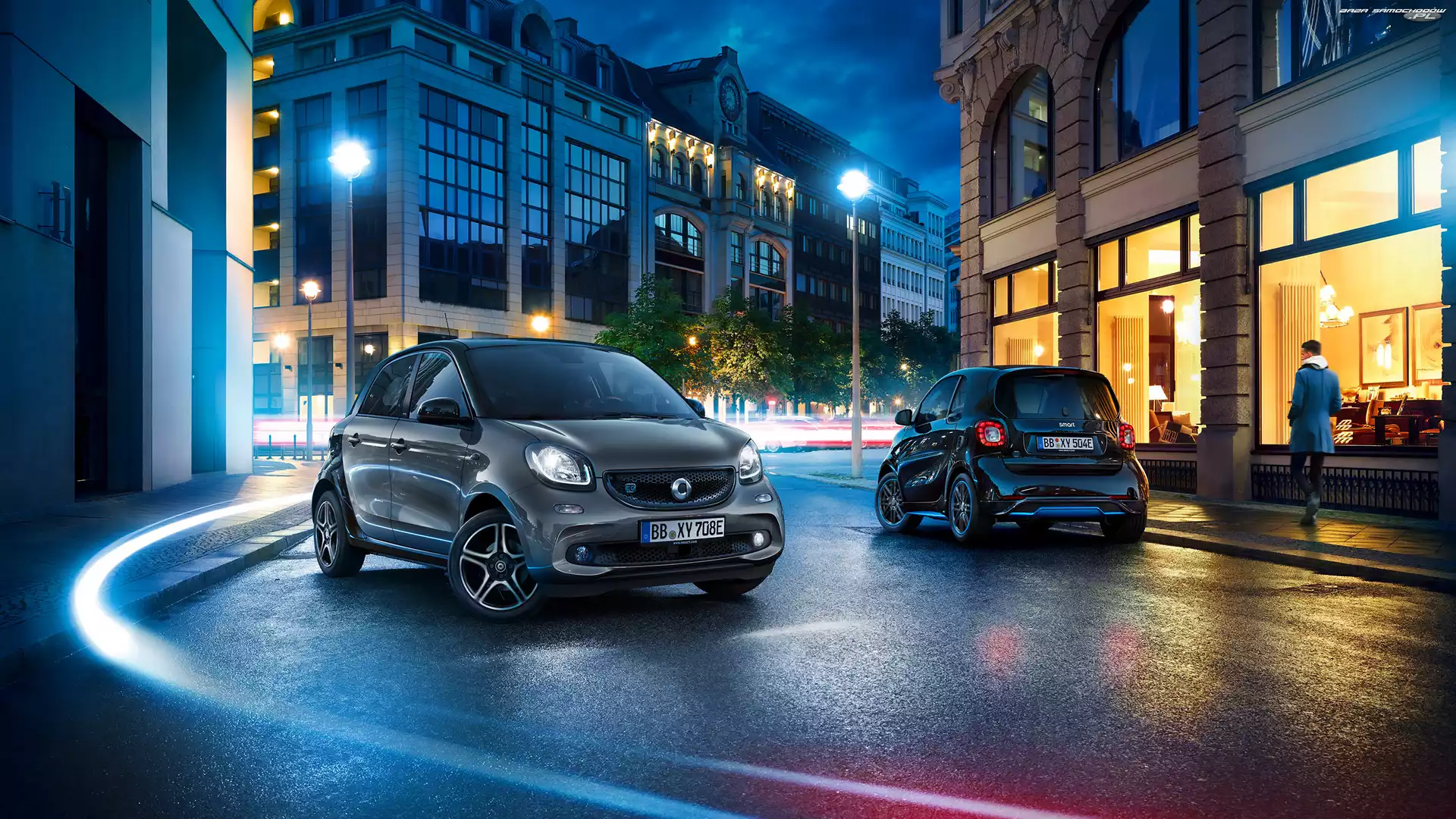 Domy, Ulica, Samochody, Dwa, Smart EQ Fortwo- Zdjęcia samochodów